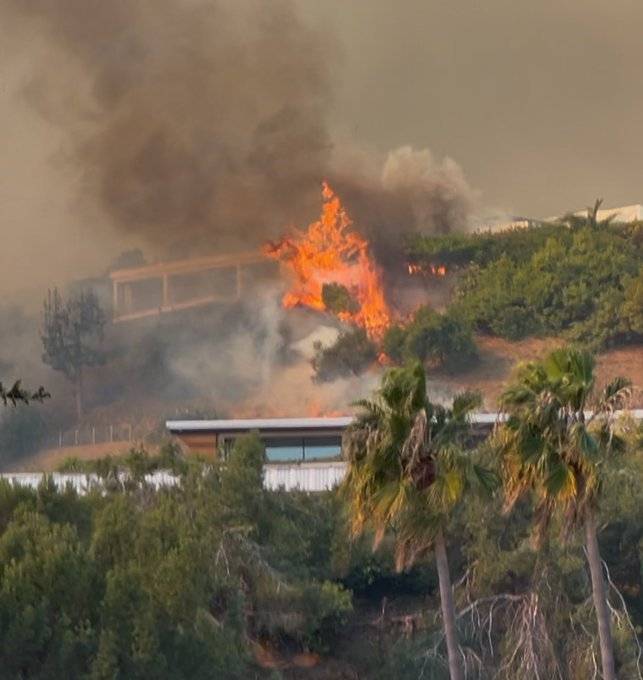 豪宅上的大火。詹姆斯·伍兹社交媒体截图。